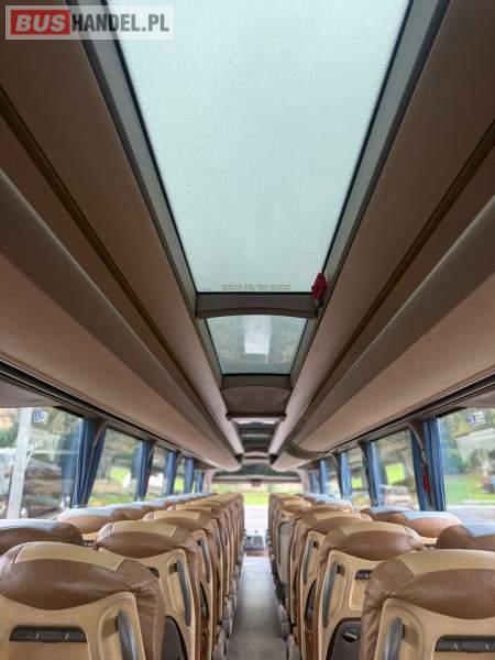 Wyposażenie: video, WC, lodówka, caffebar, fotele odchylane, oświetlenie indywidualne, siateczki, ABS, ASR, tempomat, retarder, CD, mikrofon, klimatyzacja, radio, regulacja wysokości nadwozia, centralny zamek, podwójne szyby boczne, wspomaganie kierownicy, aluminiowe felgi, DVD, ogrzewanie stacjonarne, ESP