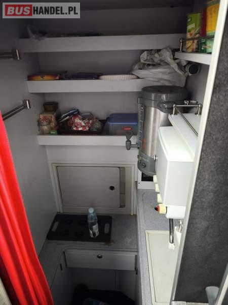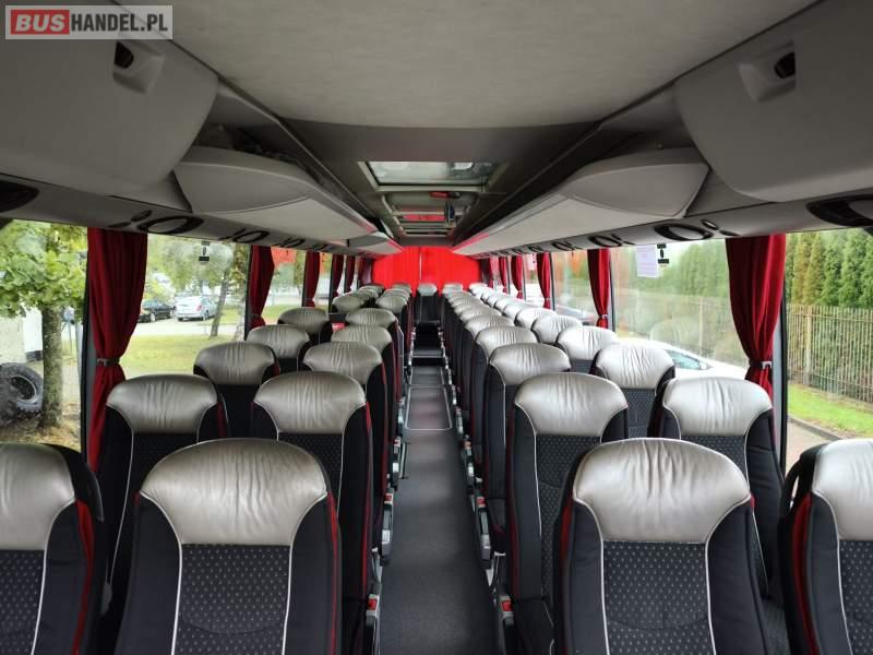 Wyposażenie: WC, lodówka, caffebar, kabina sypialna, fotele odchylane, oświetlenie indywidualne, nawiewy dyszowe, ABS, ASR, retarder, nawigacja, CD, podnóżki, mikrofon, klimatyzacja, radio, regulacja wysokości nadwozia, centralny zamek, podwójne szyby boczne, elektryczne lusterka, DVD, ogrzewanie stacjonarne