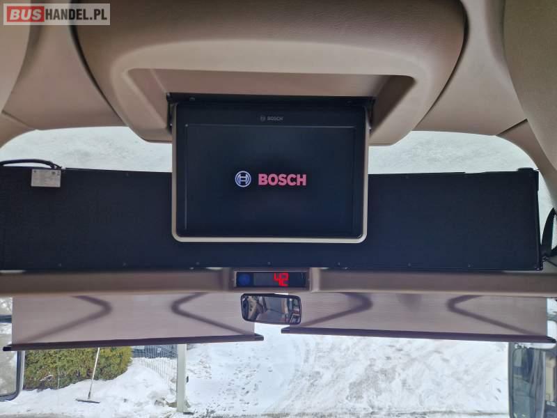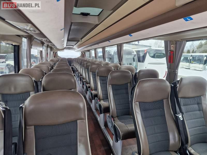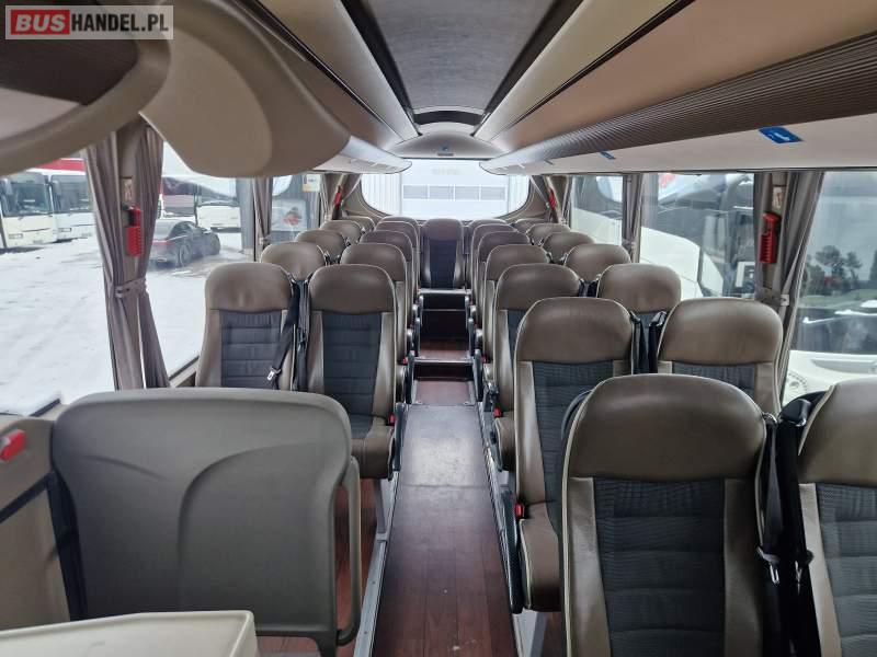 Wyposażenie: WC, lodówka, caffebar, kabina sypialna, oświetlenie indywidualne, ABS, ASR, retarder, CD, podnóżki, mikrofon, klimatyzacja, radio, rampa dla inwalidów, regulacja wysokości nadwozia, centralny zamek, podwójne szyby boczne, elektryczne lusterka, fotele odchylane i rozsuwane, DVD, ogrzewanie stacjonarne, ESP