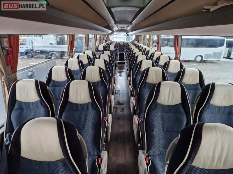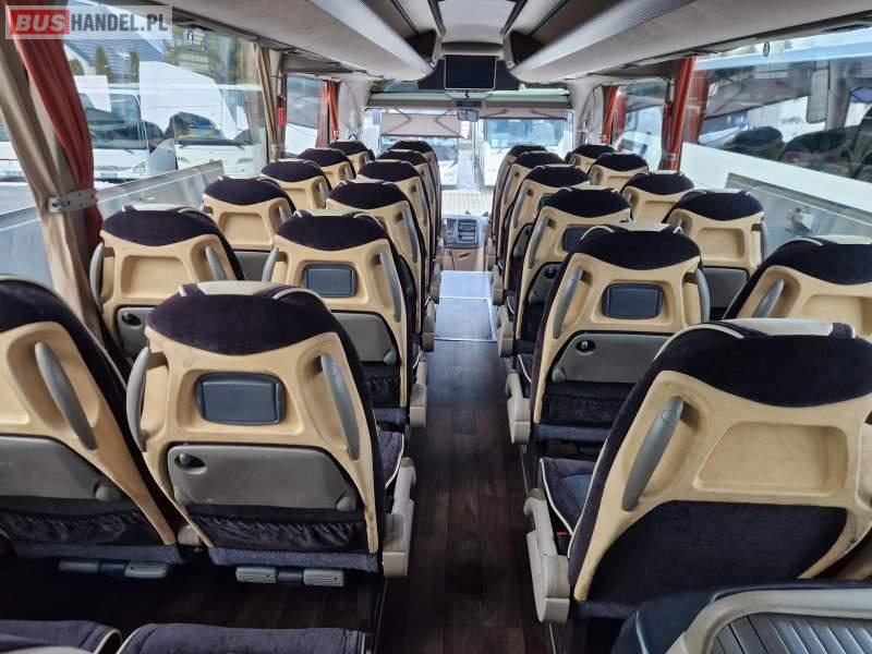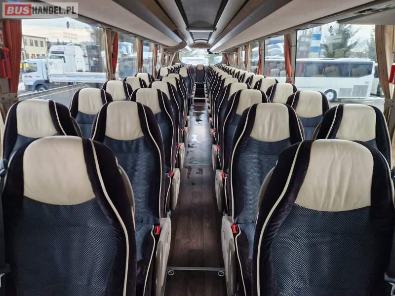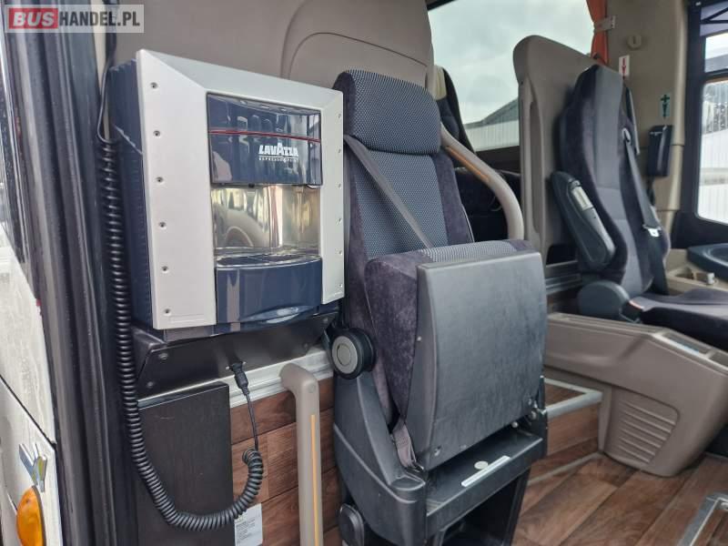 Wyposażenie: WC, lodówka, caffebar, kabina sypialna, fotele odchylane, oświetlenie indywidualne, ABS, ASR, retarder, CD, podnóżki, mikrofon, klimatyzacja, radio, regulacja wysokości nadwozia, centralny zamek, podwójne szyby boczne, elektryczne lusterka, DVD, ogrzewanie stacjonarne, ESP