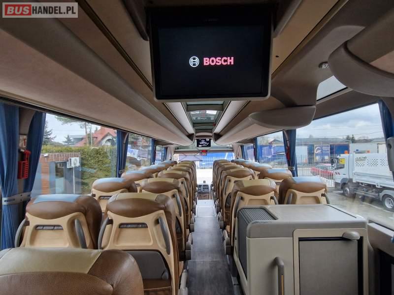 Wyposażenie: WC, lodówka, caffebar, fotele odchylane, oświetlenie indywidualne, ABS, ASR, retarder, nawigacja, CD, podnóżki, mikrofon, klimatyzacja, radio, regulacja wysokości nadwozia, centralny zamek, podwójne szyby boczne, elektryczne lusterka, aluminiowe felgi, DVD, ogrzewanie stacjonarne, ESP