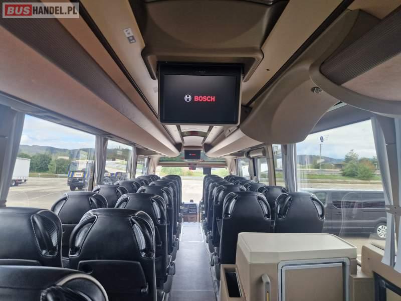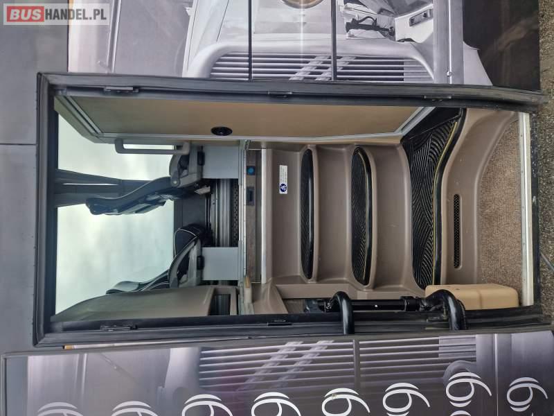 Wyposażenie: video, WC, lodówka, caffebar, fotele odchylane, oświetlenie indywidualne, nawiewy dyszowe, siateczki, ABS, ASR, tempomat, retarder, telefon, nawigacja, CD, podnóżki, stoliczki, mikrofon, klimatyzacja, radio, wyświetlacz matrix, rampa dla inwalidów, regulacja wysokości nadwozia, centralny zamek, podwójne szyby boczne, wspomaganie kierownicy, elektryczne lusterka, DVD, ogrzewanie stacjonarne, ESP