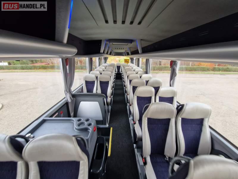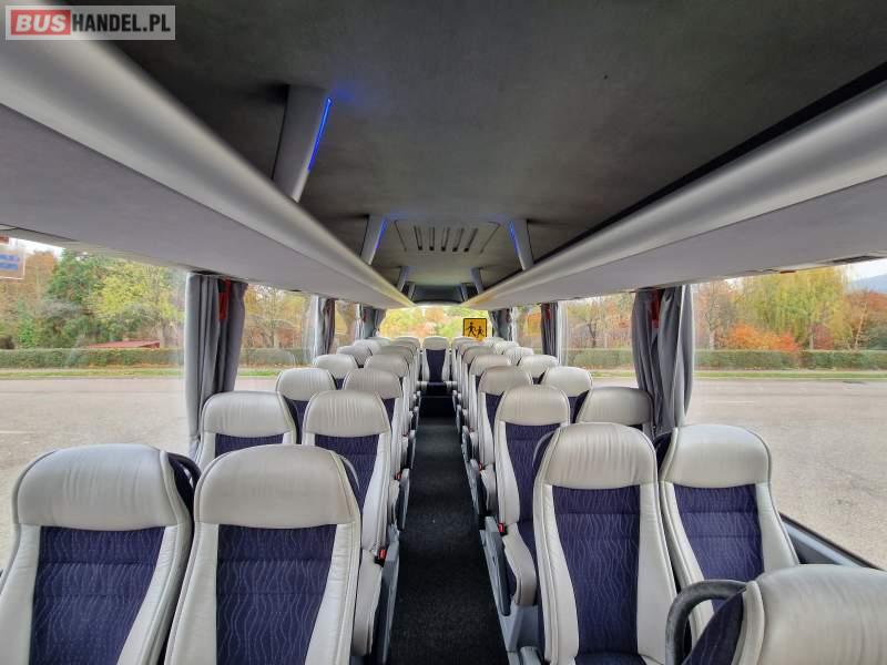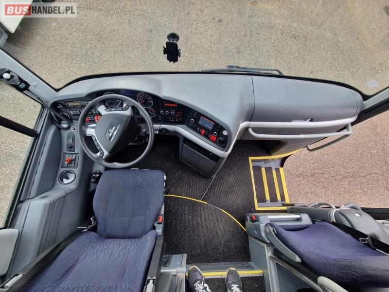 Wyposażenie: WC, lodówka, caffebar, fotele odchylane, oświetlenie indywidualne, ABS, ASR, retarder, CD, mikrofon, klimatyzacja, radio, regulacja wysokości nadwozia, centralny zamek, podwójne szyby boczne, elektryczne lusterka, DVD, ogrzewanie stacjonarne, ESP