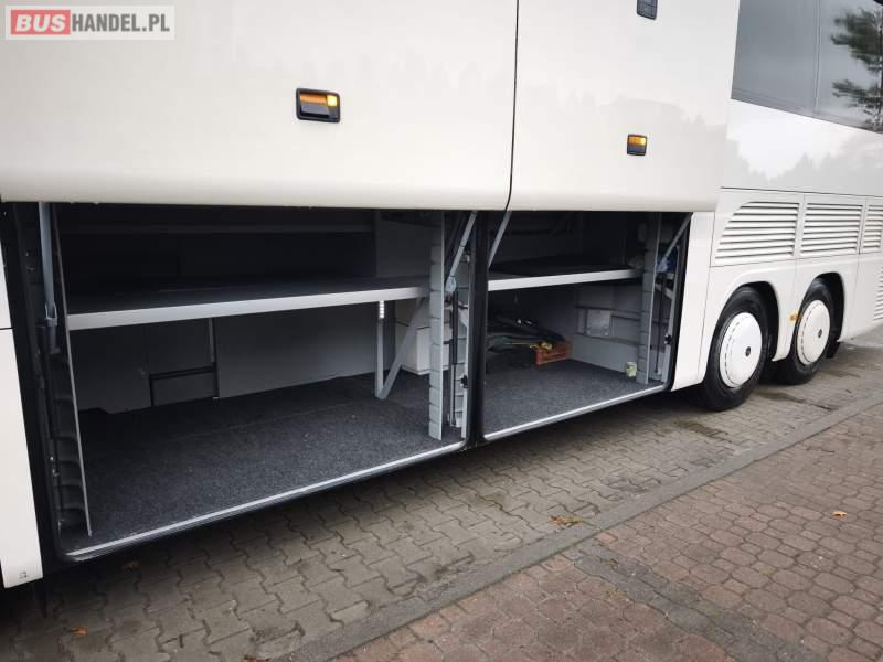 Wyposażenie: WC, lodówka, caffebar, kabina sypialna, fotele odchylane, oświetlenie indywidualne, nawiewy dyszowe, ABS, ASR, retarder, nawigacja, CD, podnóżki, mikrofon, klimatyzacja, radio, regulacja wysokości nadwozia, centralny zamek, podwójne szyby boczne, elektryczne lusterka, DVD, ogrzewanie stacjonarne