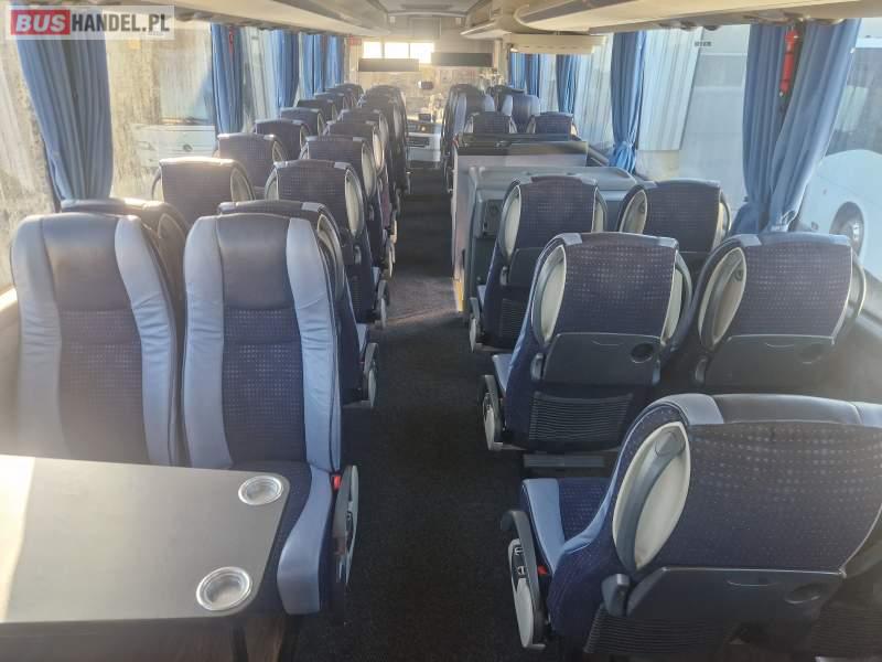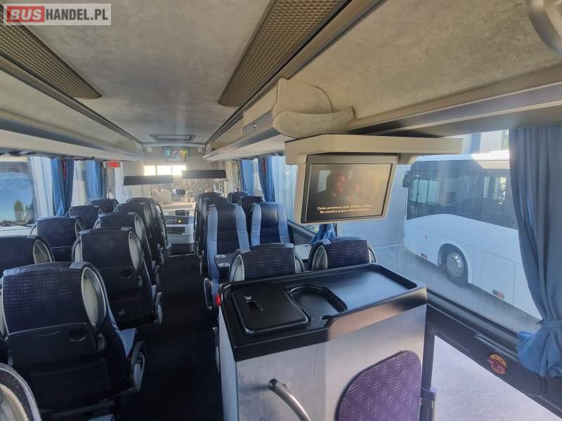 Wyposażenie: video, WC, lodówka, caffebar, kabina sypialna, oświetlenie indywidualne, nawiewy dyszowe, siateczki, ABS, ASR, tempomat, retarder, telefon, nawigacja, CD, podnóżki, stoliczki, mikrofon, klimatyzacja, radio, wyświetlacz matrix, sejf, regulacja wysokości nadwozia, centralny zamek, podwójne szyby boczne, wspomaganie kierownicy, elektryczne lusterka, fotele odchylane i rozsuwane, DVD, ogrzewanie stacjonarne, hak holowniczy, ESP