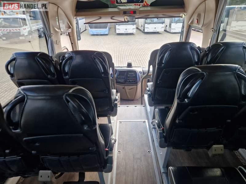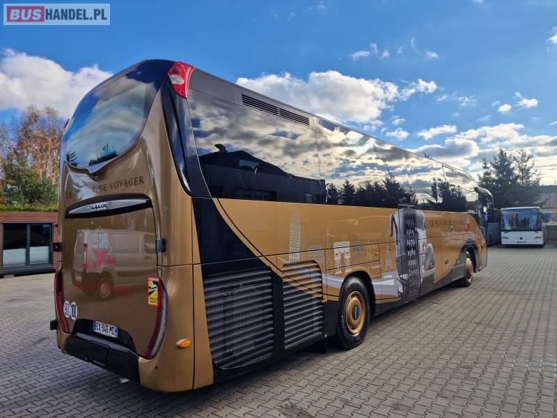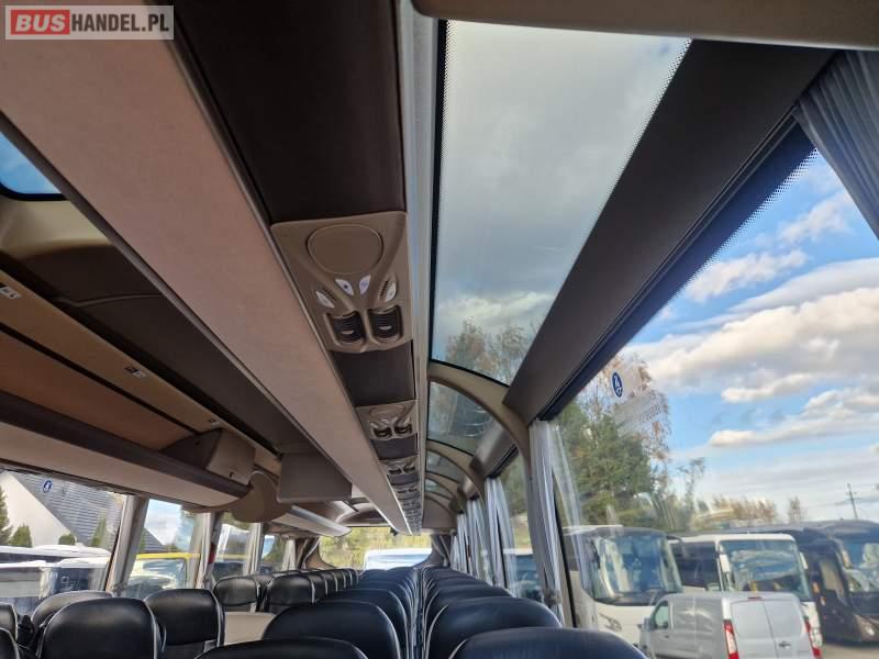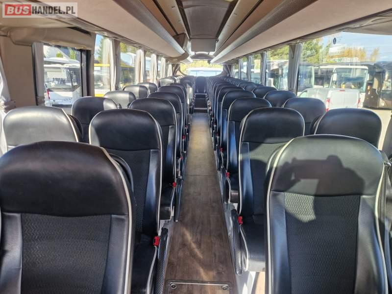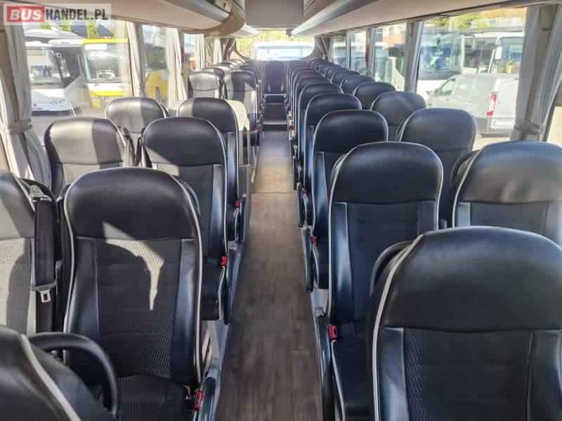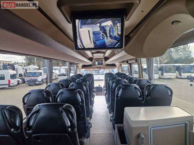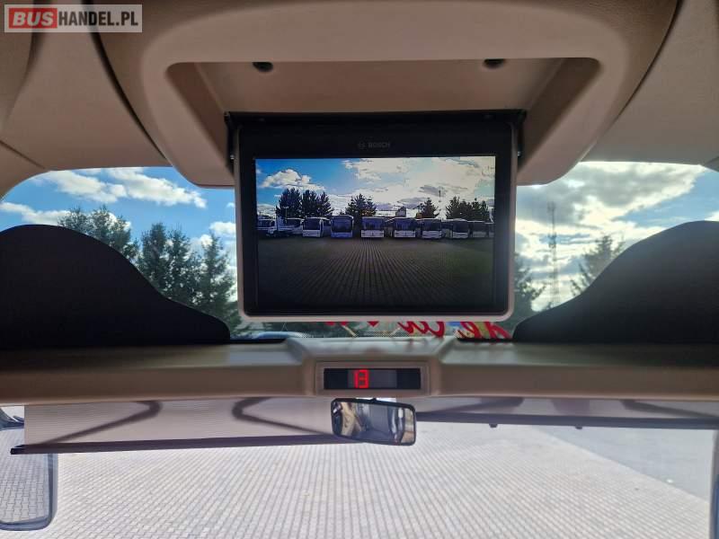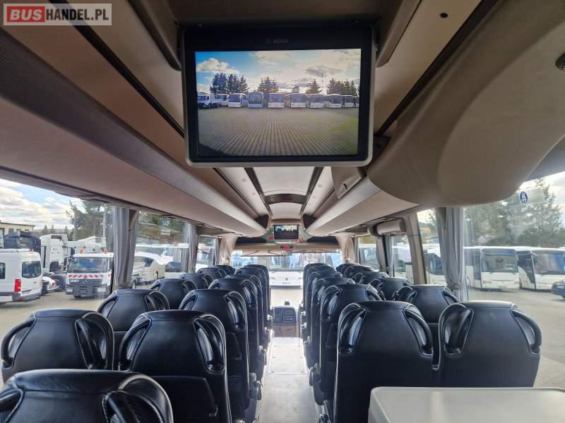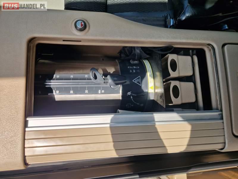 Wyposażenie: video, WC, lodówka, caffebar, oświetlenie indywidualne, nawiewy dyszowe, siateczki, ABS, ASR, tempomat, retarder, telefon, nawigacja, CD, podnóżki, stoliczki, mikrofon, klimatyzacja, radio, wyświetlacz matrix, rampa dla inwalidów, regulacja wysokości nadwozia, centralny zamek, podwójne szyby boczne, wspomaganie kierownicy, elektryczne lusterka, fotele odchylane i rozsuwane, DVD, ogrzewanie stacjonarne, ESP