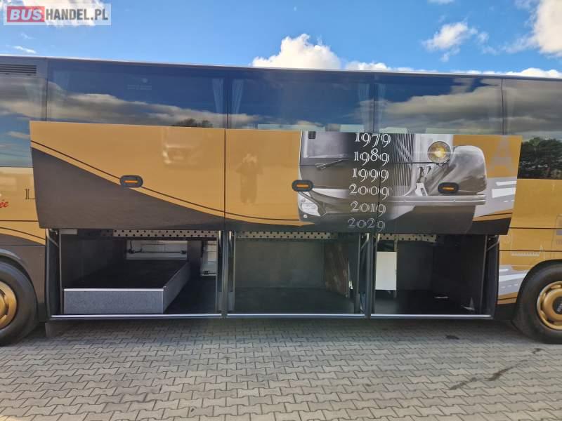 Wyposażenie: video, WC, lodówka, caffebar, oświetlenie indywidualne, nawiewy dyszowe, siateczki, ABS, ASR, tempomat, retarder, telefon, nawigacja, CD, podnóżki, stoliczki, mikrofon, klimatyzacja, radio, wyświetlacz matrix, rampa dla inwalidów, regulacja wysokości nadwozia, centralny zamek, podwójne szyby boczne, wspomaganie kierownicy, elektryczne lusterka, fotele odchylane i rozsuwane, DVD, ogrzewanie stacjonarne, ESP