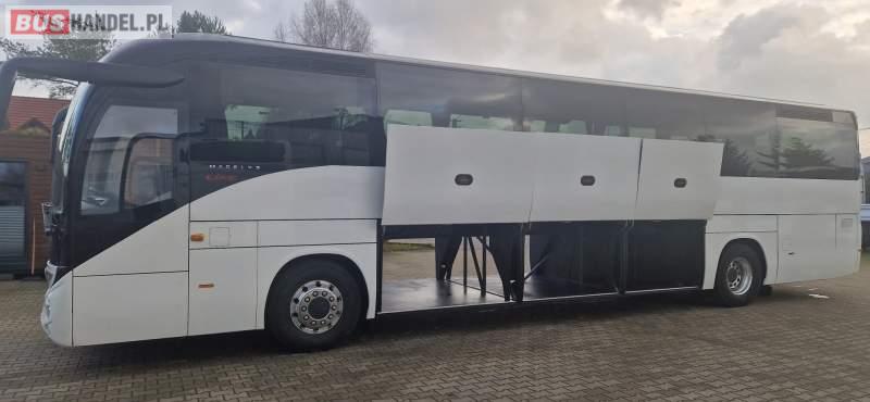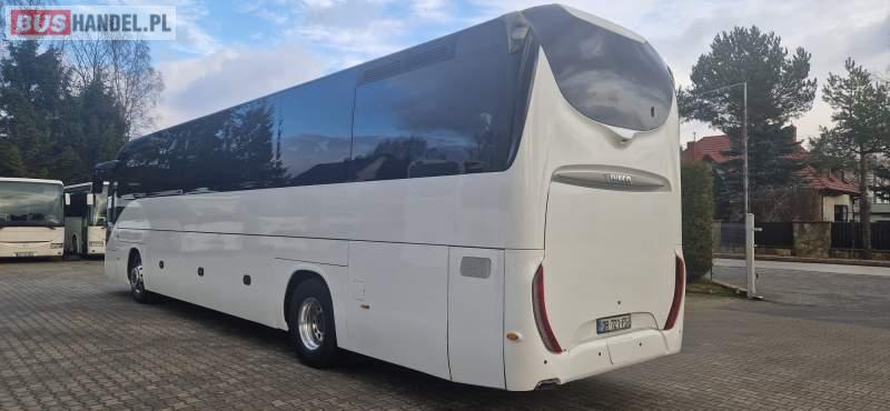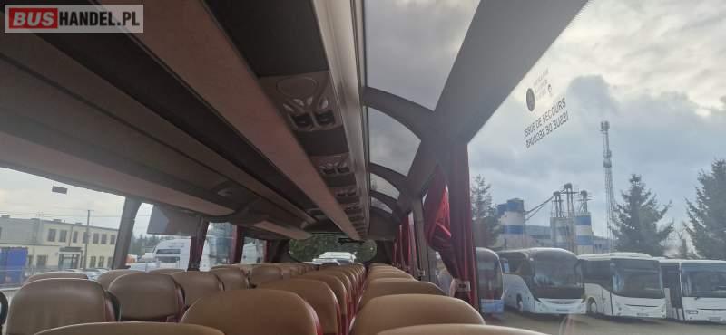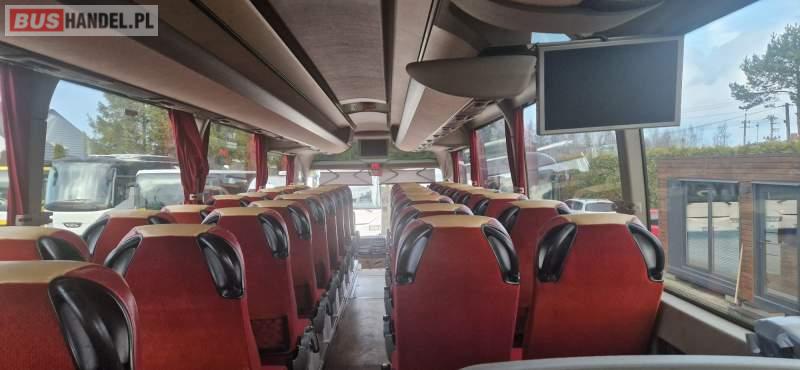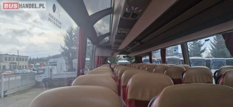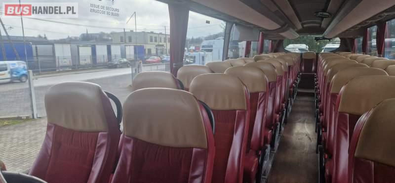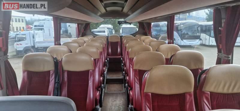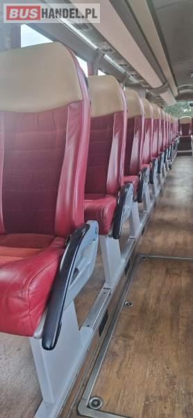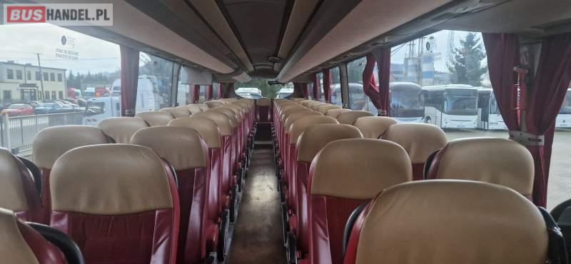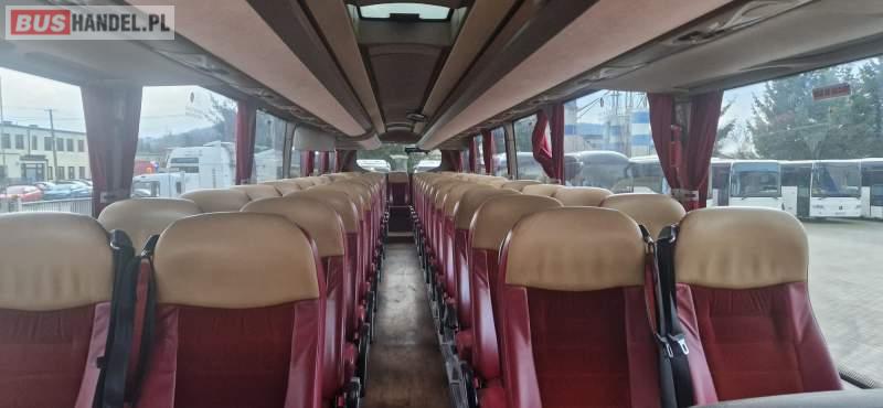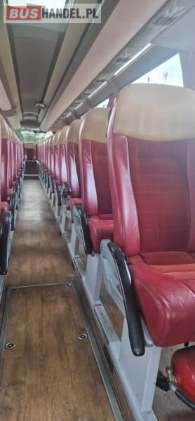 Wyposażenie: video, lodówka, caffebar, fotele odchylane, oświetlenie indywidualne, siateczki, ABS, ASR, tempomat, retarder, CD, podnóżki, stoliczki, mikrofon, klimatyzacja, radio, regulacja wysokości nadwozia, centralny zamek, podwójne szyby boczne, wspomaganie kierownicy, elektryczne lusterka, aluminiowe felgi, DVD, ogrzewanie stacjonarne, ESP