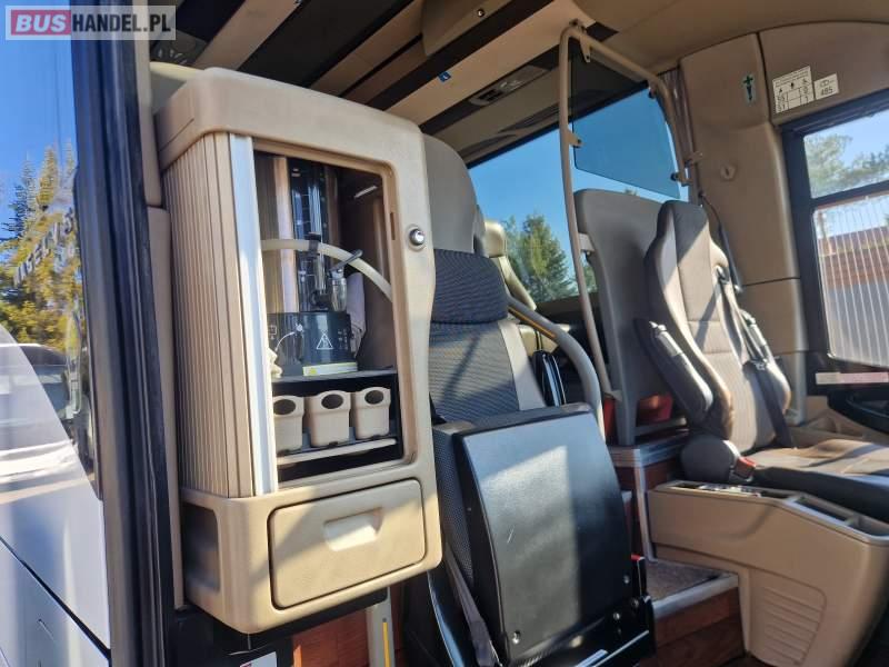 Wyposażenie: video, WC, lodówka, caffebar, oświetlenie indywidualne, nawiewy dyszowe, siateczki, ABS, ASR, tempomat, retarder, telefon, CD, podnóżki, stoliczki, mikrofon, klimatyzacja, radio, rampa dla inwalidów, regulacja wysokości nadwozia, centralny zamek, podwójne szyby boczne, wspomaganie kierownicy, elektryczne lusterka, fotele odchylane i rozsuwane, DVD, ogrzewanie stacjonarne, ESP